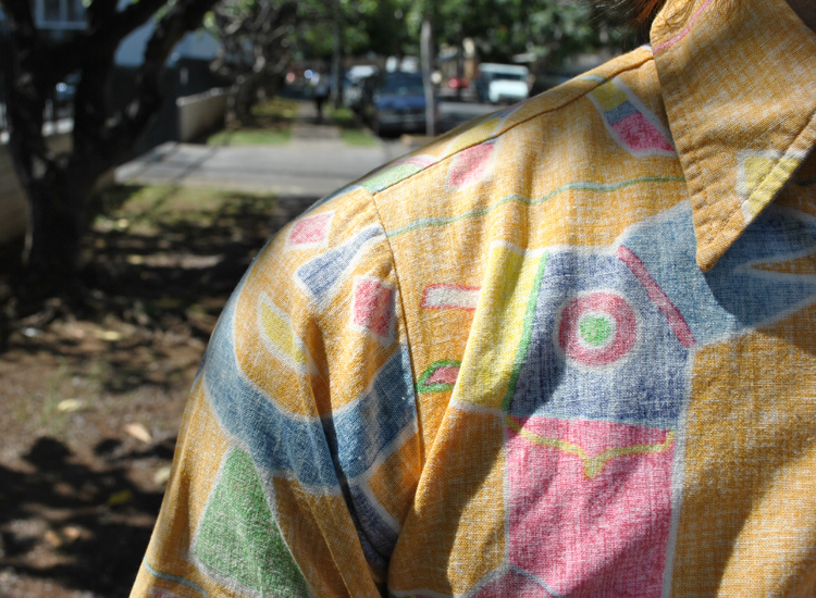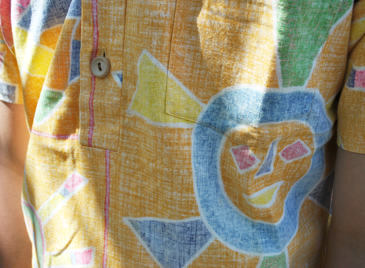 一見子どもの落書き?のようにも見えるし、はたまた一流アーティストが手掛けたかのように思わせてしまう不思議なアロハシャツ。