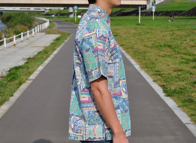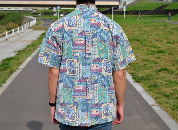 リバースプリント(裏地使い)を施したアロハシャツの元祖とも