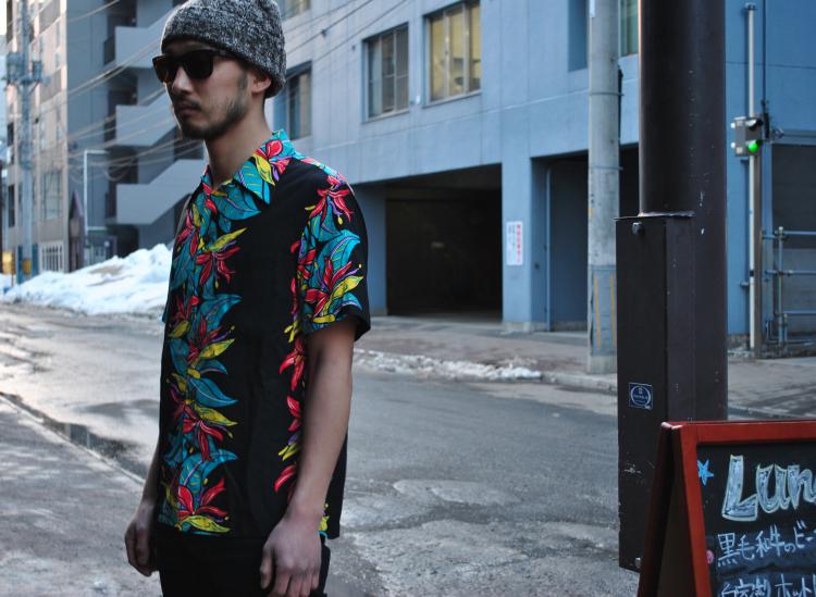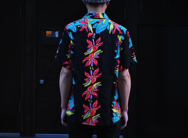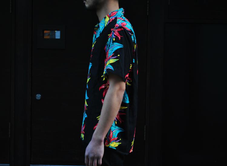 ブラックをベースにフロントの中央・バックの中央の色鮮やかなリーフのイラストが魅力的な一枚。イラスト自体は派手でもベースがブラックなので派手すぎず渋く着れる一枚。